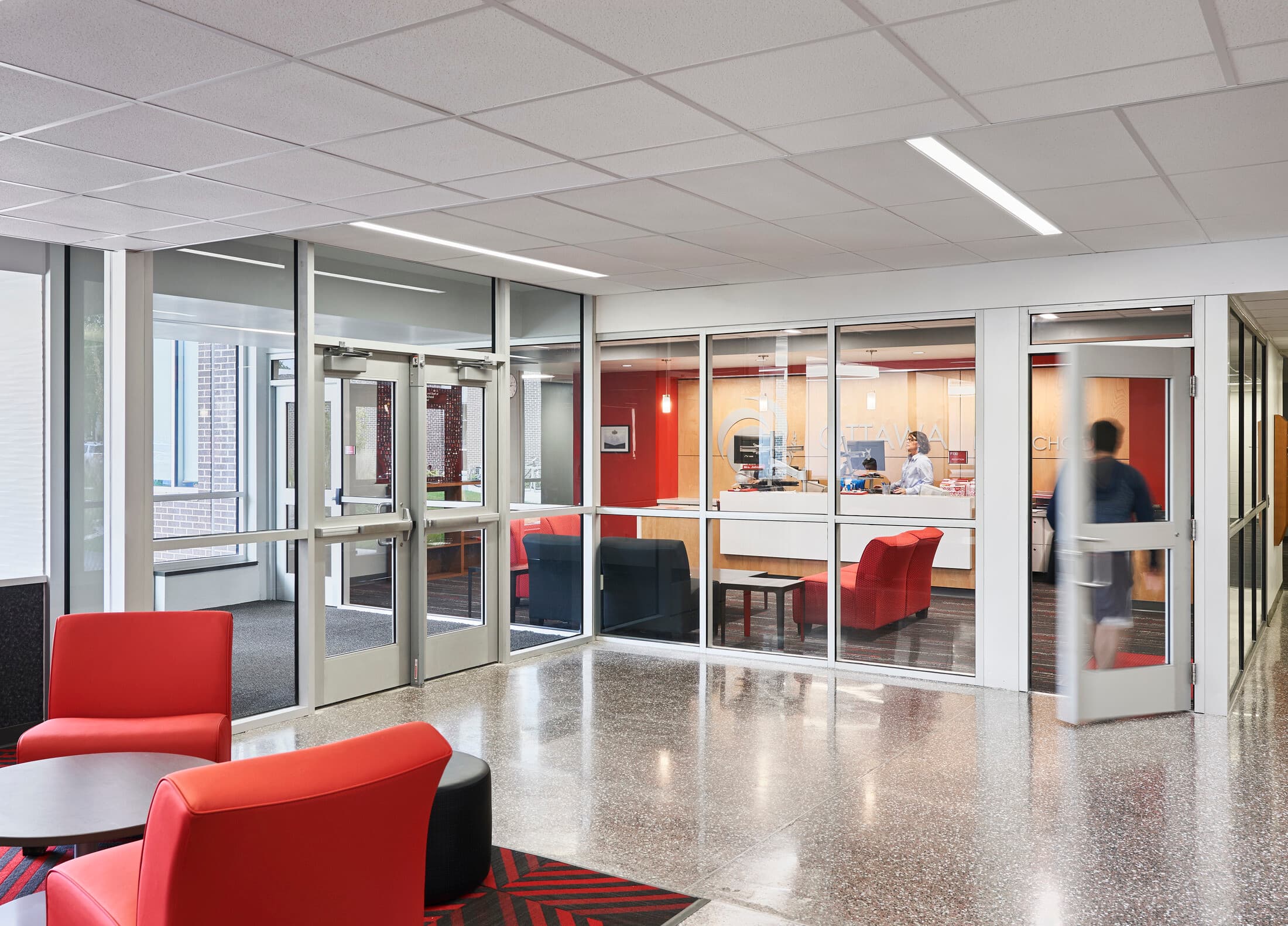 The schools vestibule and front office is key to ensuring school safety. District safety guidelines, a school's special needs and schedule will all impact how the security is designed. Additional security spaces such as, SRO, ISS and security office needs to be strategically placed to align with overall District security strategy.