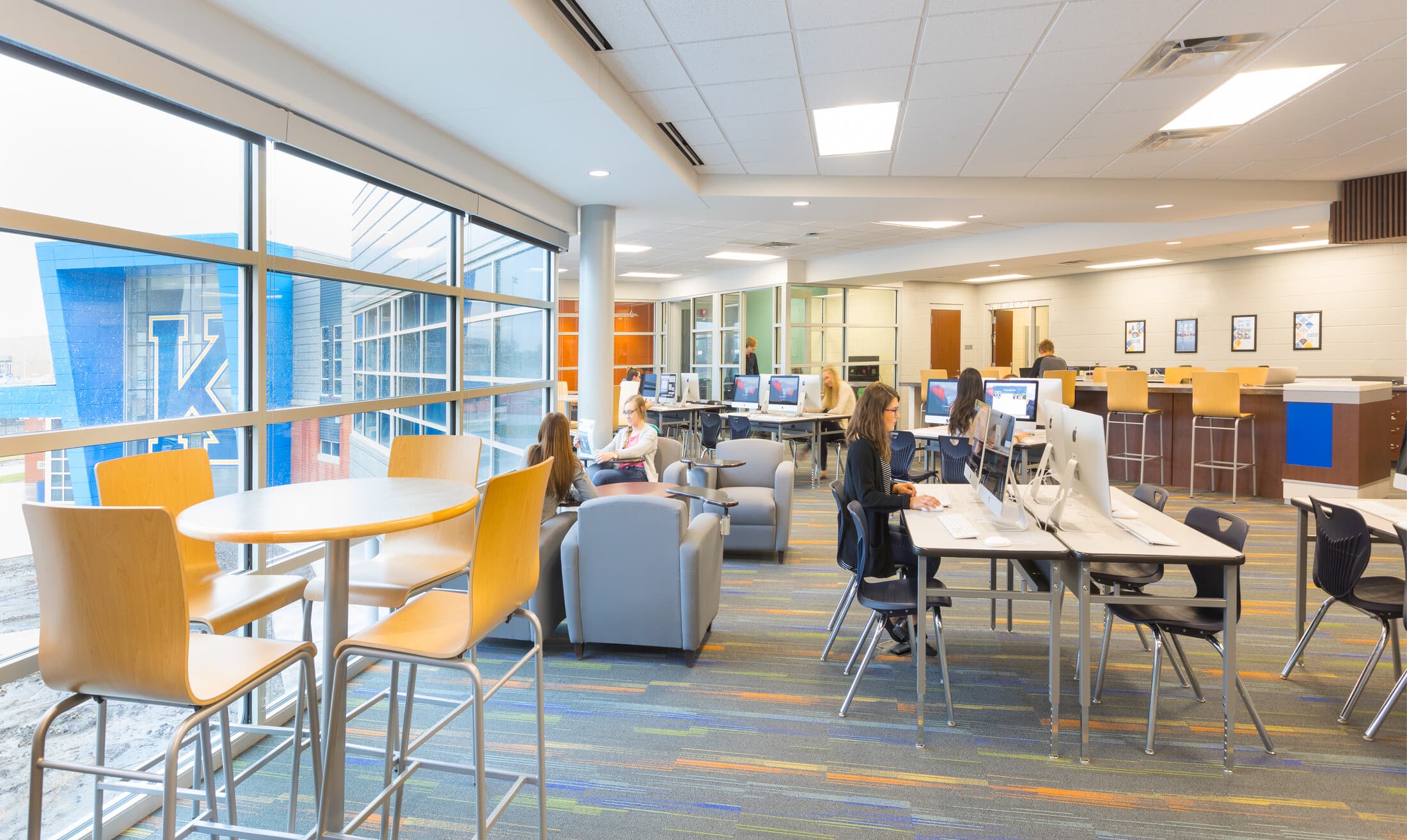 Flexible furniture allows for many types of learning setups. Individual studying, group and partner arrangements, and large group seating should all be made possible.