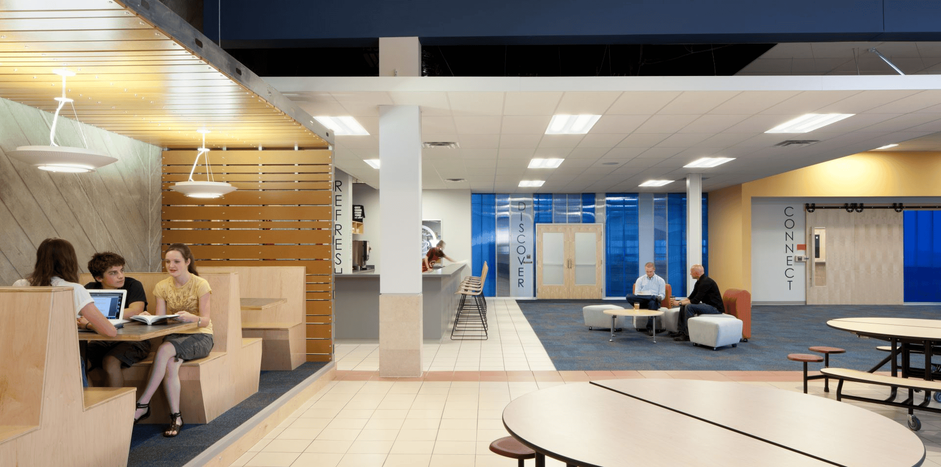 Provide a variety of seating types and arrangements, to cater to different students’ needs and social comfortability. Provide for opportunities in large dining areas for presentations and other large-scale events by equipping with Audio/Visual equipment such as projector, screen and speakers.