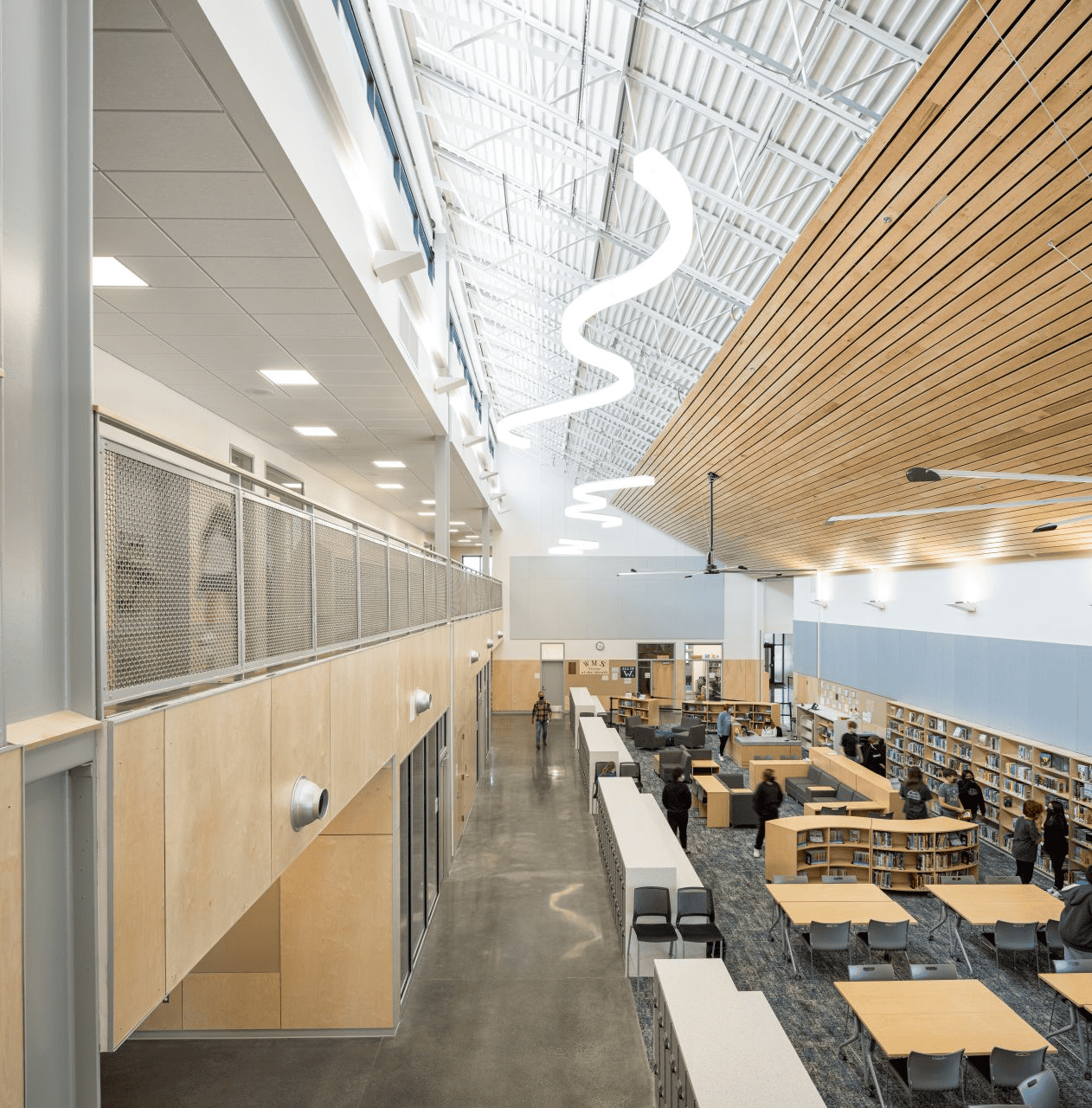 The display of knowledge should also reflect the school's sustainability narrative. Learning Commons, Libraries, and media centers can help fortify the connection through visual displays with labeled sustainability features that highlight deliberate connections to the school's curriculum.