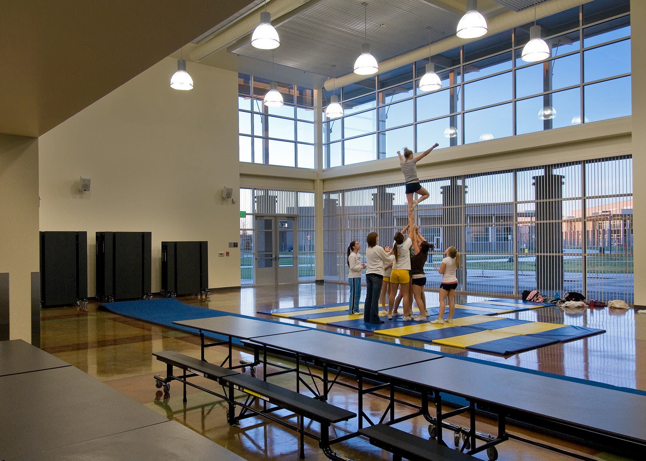A high-volume space would allow for greatest flexibility for dance jumps, theater builds, science experiments, and acoustics for large events.