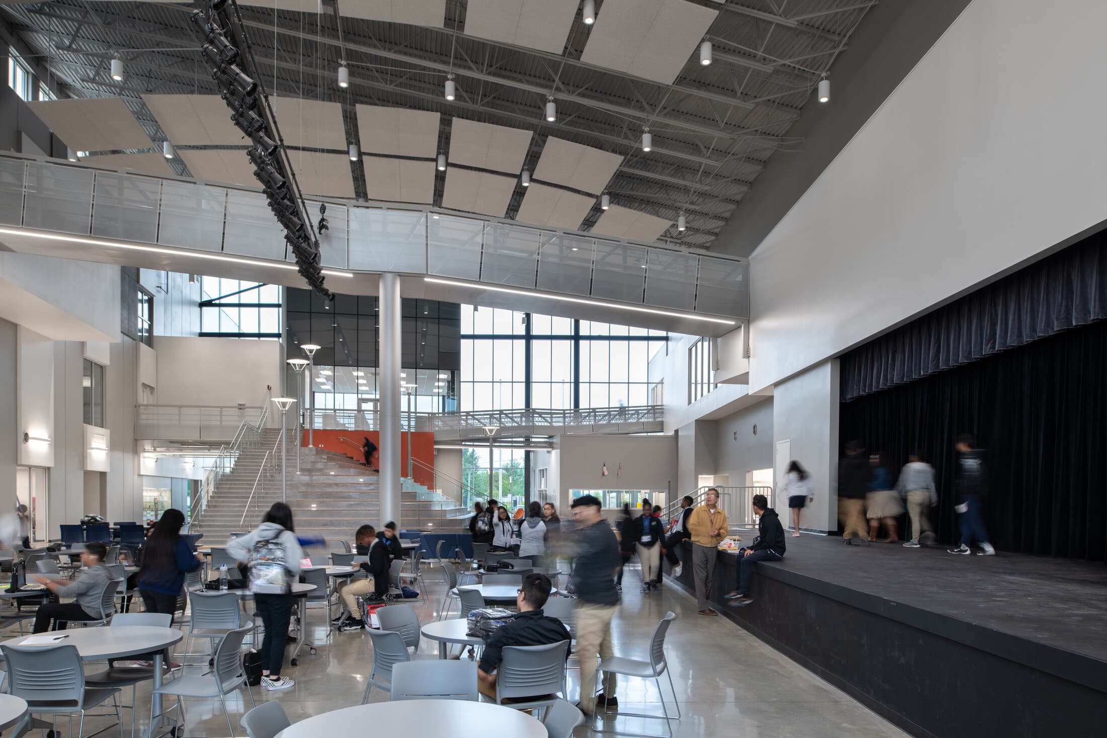 Adjacent performance spaces can be adjacent to a multi-use space for added flexibility.