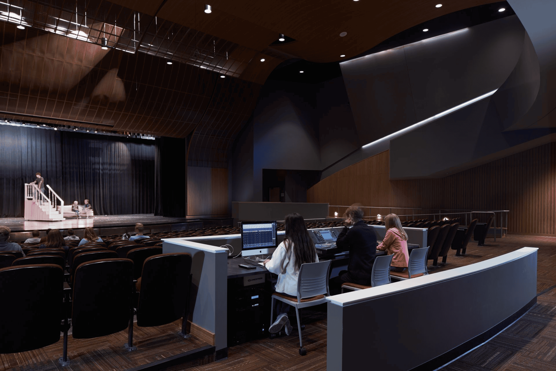 High schools shall have a performing arts center with the ability to put on shows, as well as a variety of large assemblies and performances. This space should be accessible for use by all VAPA programs. The space ideally has ample seating and Audio/Visual technology integration.
